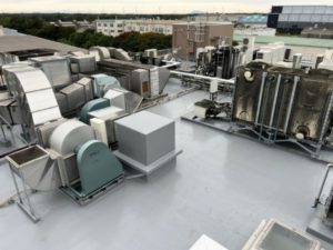 工場の屋上防水工事(保護トップコート塗布)|神奈川県平塚市の某工場にて塗り替え塗装中