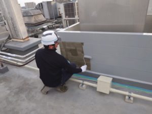 貯蔵庫周りの箱型擁壁の防水塗装|千葉県八千代市の工場にて屋上の防水工事