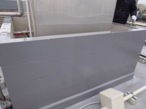 貯蔵庫周りの箱型擁壁の防水塗装|千葉県八千代市の工場にて屋上の防水工事