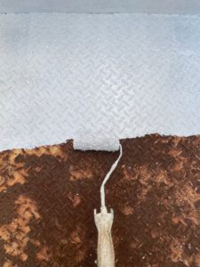 酷い錆が広がった共用階段の塗装工事|神奈川県横浜市の某社屋にて塗り替え塗装中