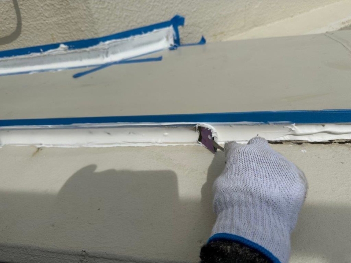 プライマーが乾燥したらコーキングをたっぷりと充填していきます。