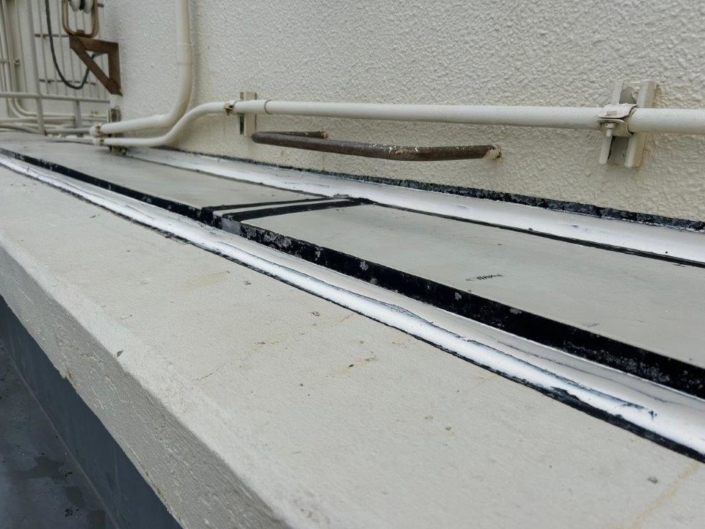 特に笠木は全体的にコーキングの劣化が見られ、放置すると雨漏りや躯体に悪影響を及ぼす可能性もありました💦