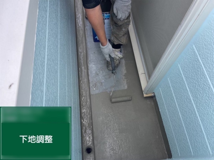 | 施工内容 | ベランダ ウレタン防水工事(下地調整・プライマー・防水層施工・トップコート) |
