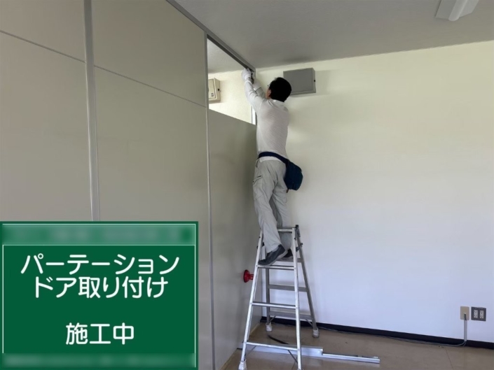 神奈川県平塚市の工場内で、内装リフォームに伴うパーテーションドアの取り付け工事を実施しました。