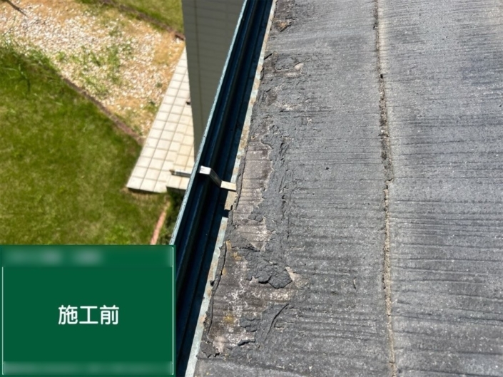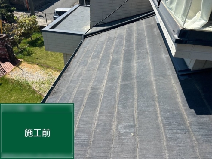 施工前の屋根は全体的に色あせが進み、塗膜が粉化していました。