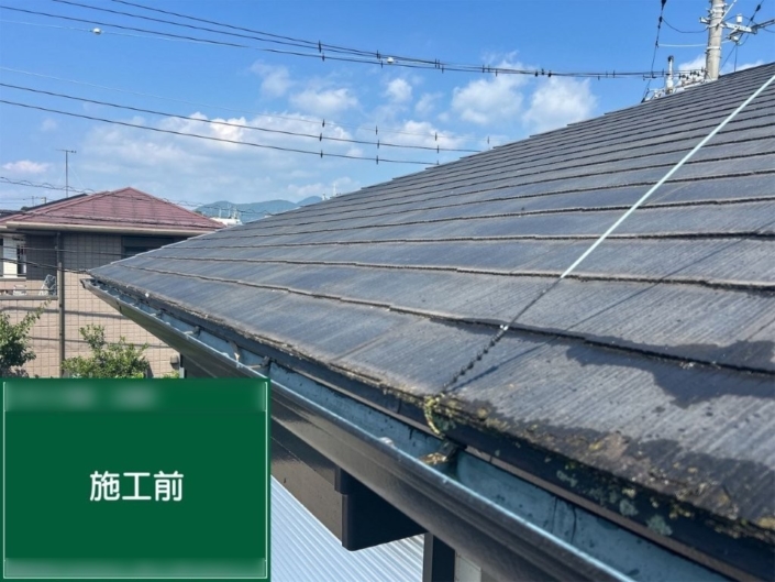 表面に汚れやカビ・コケが付着しており、雨水を弾く力がほとんどない状態でした。