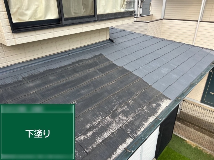 下塗りは“塗装の要”ともいえる工程で、屋根材と上塗り塗料を密着させる役割を果たします。
